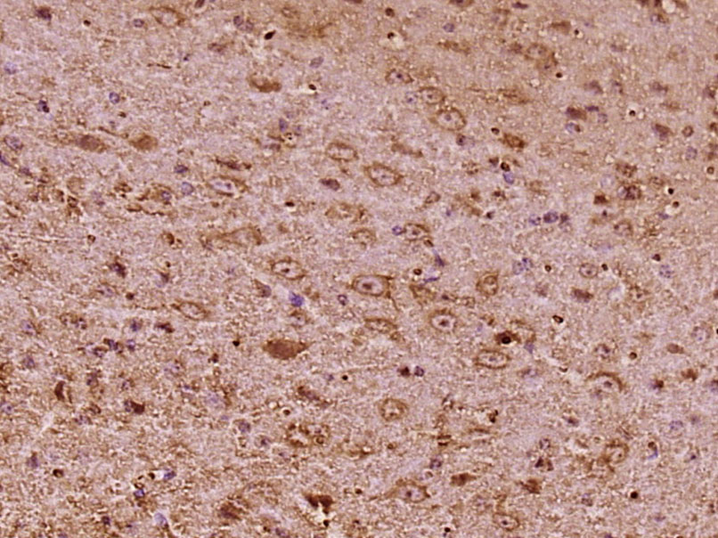 Paraformaldehyde-fixed, paraffin embedded (Mouse brain); Antigen retrieval by boiling in sodium citrate buffer (pH6.0) for 15min; Block endogenous peroxidase by 3% hydrogen peroxide for 20 minutes; Blocking buffer (normal goat serum) at 37°C for 30min; Antibody incubation with (SPINK6) Polyclonal Antibody, Unconjugated (bs-17674R) at 1:400 overnight at 4°C, followed by operating according to SP Kit(Rabbit) (sp-0023) instructionsand DAB staining.