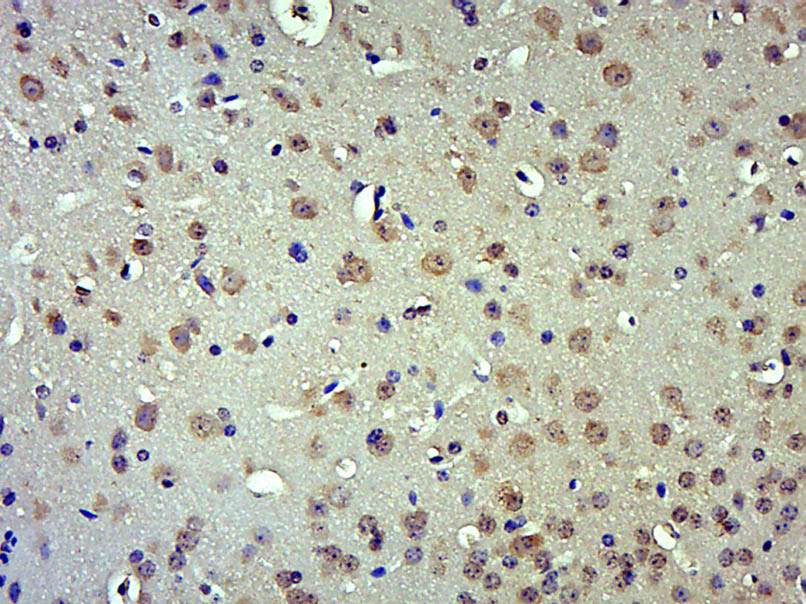 Paraformaldehyde-fixed, paraffin embedded (Mouse brain); Antigen retrieval by boiling in sodium citrate buffer (pH6.0) for 15min; Block endogenous peroxidase by 3% hydrogen peroxide for 20 minutes; Blocking buffer (normal goat serum) at 37°C for 30min; Antibody incubation with (MRPL14) Polyclonal Antibody, Unconjugated (bs-17770R) at 1:400 overnight at 4°C, followed by operating according to SP Kit(Rabbit) (sp-0023) instructionsand DAB staining.