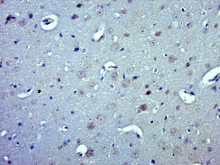 Paraformaldehyde-fixed, paraffin embedded (Mouse brain); Antigen retrieval by boiling in sodium citrate buffer (pH6.0) for 15min; Block endogenous peroxidase by 3% hydrogen peroxide for 20 minutes; Blocking buffer (normal goat serum) at 37°C for 30min; Antibody incubation with (MRPL47) Polyclonal Antibody, Unconjugated (bs-17800R) at 1:500 overnight at 4°C, followed by a conjugated secondary (sp-0023) for 20 minutes and DAB staining.