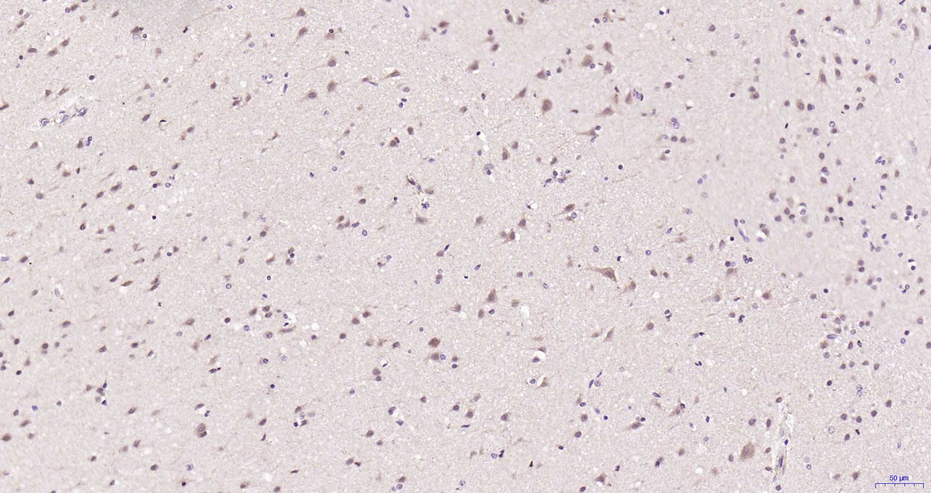Paraformaldehyde-fixed, paraffin embedded Human Cerebrum; Antigen retrieval by boiling in sodium citrate buffer (pH6.0) for 15 min; Antibody incubation with MT-ATP6 Polyclonal Antibody, Unconjugated (bs-17865R) at 1:200 overnight at 4°C, followed by conjugation to the SP Kit (Rabbit, SP-0023) and DAB (C-0010) staining.