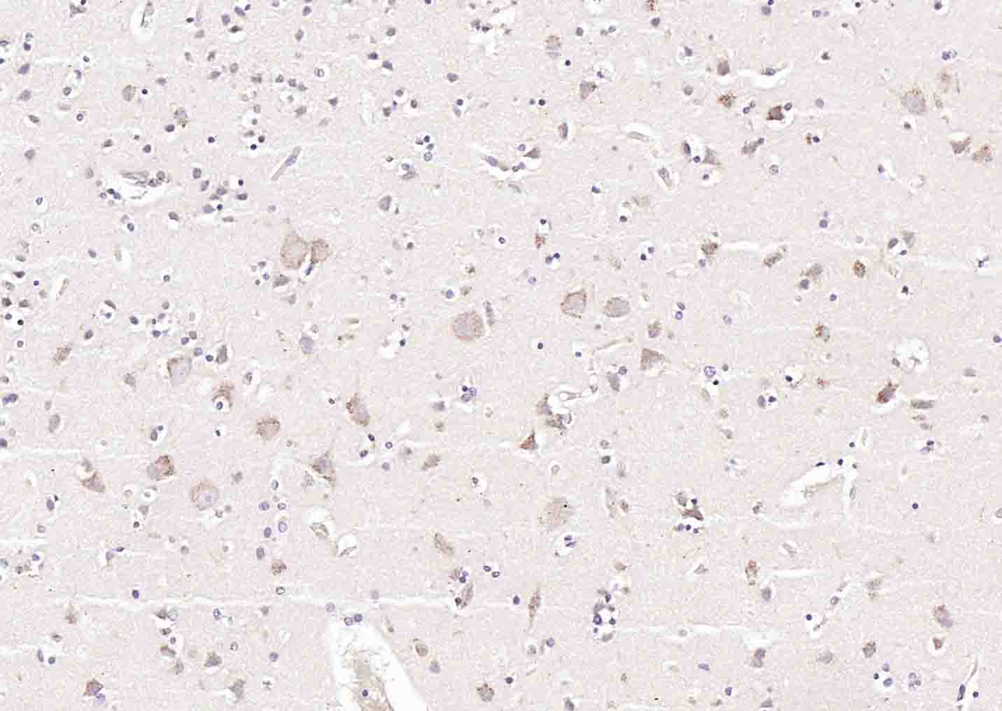 Paraformaldehyde-fixed, paraffin embedded (human brain); Antigen retrieval by boiling in sodium citrate buffer (pH6.0) for 15min; Block endogenous peroxidase by 3% hydrogen peroxide for 20 minutes; Blocking buffer (normal goat serum) at 37°C for 30min; Incubation with (HTRA4) Polyclonal Antibody, Unconjugated (bs-18101R) at 1:200 overnight at 4°C, followed by operating according to SP Kit(Rabbit) (sp-0023) instructionsand DAB staining.