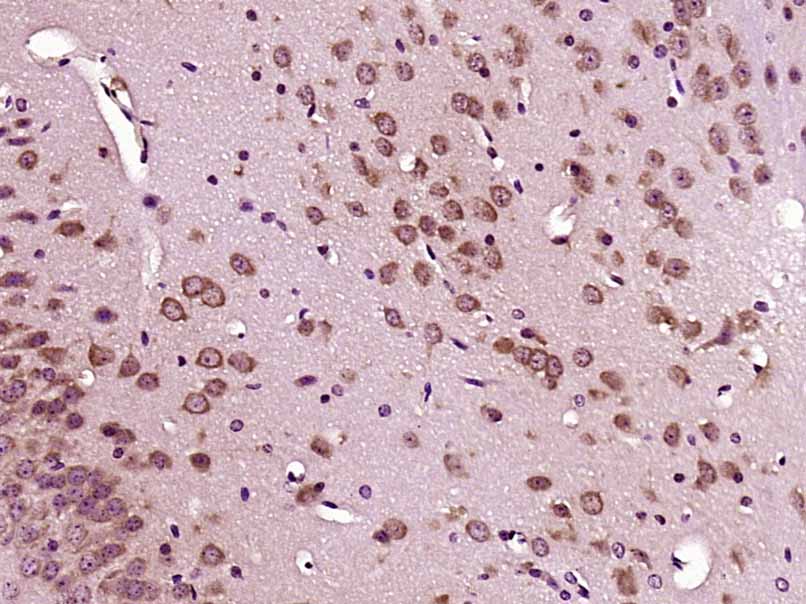 Paraformaldehyde-fixed, paraffin embedded (Mouse brain); Antigen retrieval by boiling in sodium citrate buffer (pH6.0) for 15min; Block endogenous peroxidase by 3% hydrogen peroxide for 20 minutes; Blocking buffer (normal goat serum) at 37°C for 30min; Antibody incubation with (LIPT2) Polyclonal Antibody, Unconjugated (bs-18297R) at 1:400 overnight at 4°C, followed by operating according to SP Kit(Rabbit) (sp-0023) instructionsand DAB staining.