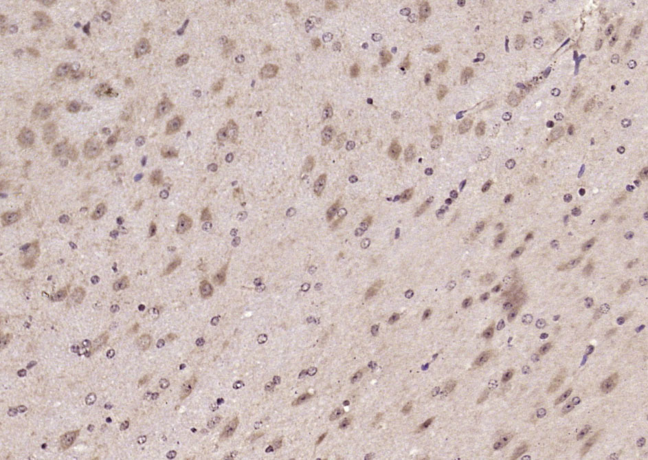Paraformaldehyde-fixed, paraffin embedded (rat brain); Antigen retrieval by boiling in sodium citrate buffer (pH6.0) for 15min; Block endogenous peroxidase by 3% hydrogen peroxide for 20 minutes; Blocking buffer (normal goat serum) at 37°C for 30min; Antibody incubation with (LNX1) Polyclonal Antibody, Unconjugated (bs-18320R) at 1:200 overnight at 4°C, followed by operating according to SP Kit(Rabbit) (sp-0023) instructionsand DAB staining.