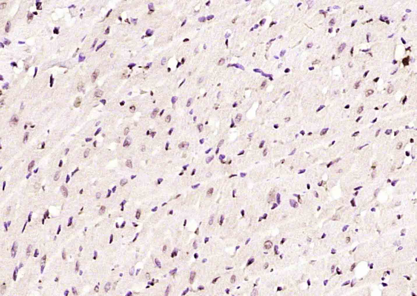 Paraformaldehyde-fixed, paraffin embedded (rat heart); Antigen retrieval by boiling in sodium citrate buffer (pH6.0) for 15min; Block endogenous peroxidase by 3% hydrogen peroxide for 20 minutes; Blocking buffer (normal goat serum) at 37°C for 30min; Antibody incubation with (ZNF366) Polyclonal Antibody, Unconjugated (bs-18510R) at 1:200 overnight at 4°C, followed by operating according to SP Kit(Rabbit) (sp-0023) instructionsand DAB staining.