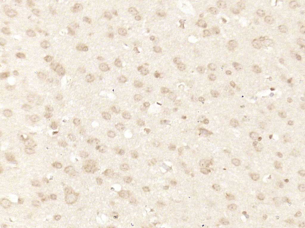 Paraformaldehyde-fixed, paraffin embedded (rat brain); Antigen retrieval by boiling in sodium citrate buffer (pH6.0) for 15min; Block endogenous peroxidase by 3% hydrogen peroxide for 20 minutes; Blocking buffer (normal goat serum) at 37°C for 30min; Antibody incubation with (MAGOH) Polyclonal Antibody, Unconjugated (bs-18631R) at 1:200 overnight at 4°C, followed by operating according to SP Kit(Rabbit) (sp-0023) instructionsand DAB staining.