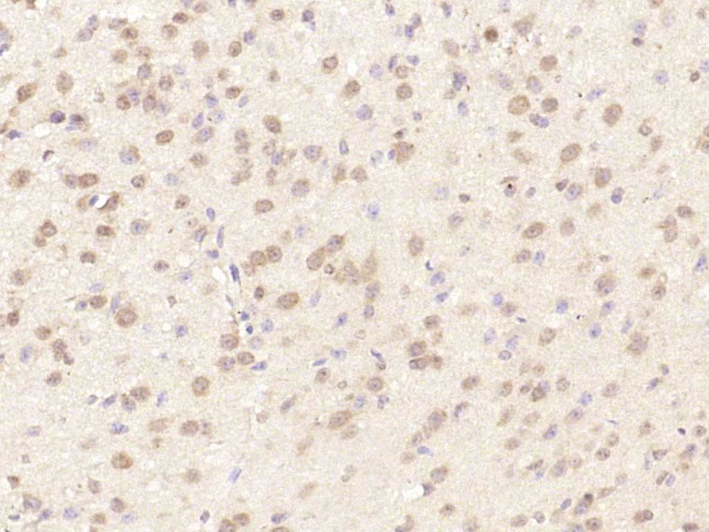 Paraformaldehyde-fixed, paraffin embedded (mouse brain); Antigen retrieval by boiling in sodium citrate buffer (pH6.0) for 15min; Block endogenous peroxidase by 3% hydrogen peroxide for 20 minutes; Blocking buffer (normal goat serum) at 37°C for 30min; Antibody incubation with (MAGOH) Polyclonal Antibody, Unconjugated (bs-18631R) at 1:200 overnight at 4°C, followed by operating according to SP Kit(Rabbit) (sp-0023) instructionsand DAB staining.