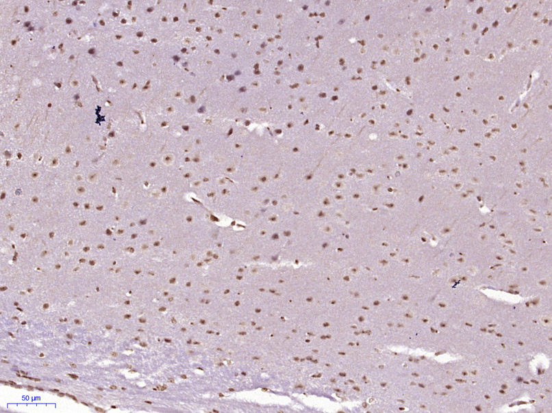 Paraformaldehyde-fixed, paraffin embedded (Mouse brain); Antigen retrieval by boiling in sodium citrate buffer (pH6.0) for 15min; Block endogenous peroxidase by 3% hydrogen peroxide for 20 minutes; Blocking buffer (normal goat serum) at 37°C for 30min; Antibody incubation with (MCAF2) Polyclonal Antibody, Unconjugated (bs-18712R) at 1:400 overnight at 4°C, followed by operating according to SP Kit(Rabbit) (sp-0023) instructionsand DAB staining.