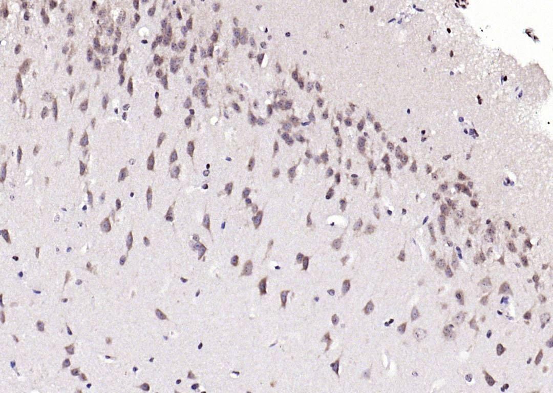Paraformaldehyde-fixed, paraffin embedded (mouse brain); Antigen retrieval by boiling in sodium citrate buffer (pH6.0) for 15min; Block endogenous peroxidase by 3% hydrogen peroxide for 20 minutes; Blocking buffer (normal goat serum) at 37°C for 30min; Antibody incubation with (phospho-MCL1 (Ser159)) Polyclonal Antibody, Unconjugated (bs-18726R) at 1:200 overnight at 4°C, followed by operating according to SP Kit(Rabbit) (sp-0023) instructionsand DAB staining.