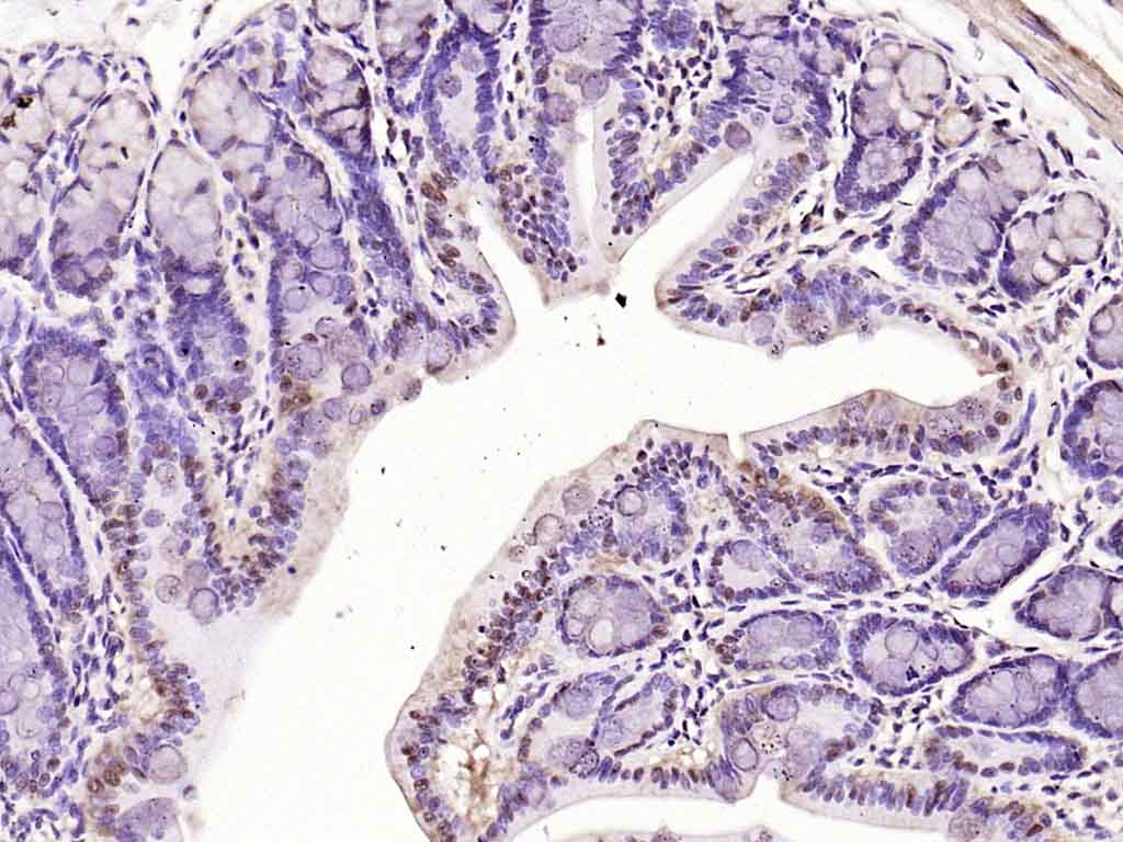 Paraformaldehyde-fixed, paraffin embedded (rat colon); Antigen retrieval by boiling in sodium citrate buffer (pH6.0) for 15min; Block endogenous peroxidase by 3% hydrogen peroxide for 20 minutes; Blocking buffer (normal goat serum) at 37°C for 30min; Antibody incubation with (MCM-BP) Polyclonal Antibody, Unconjugated (bs-18727R) at 1:200 overnight at 4°C, followed by operating according to SP Kit(Rabbit) (sp-0023) instructionsand DAB staining.