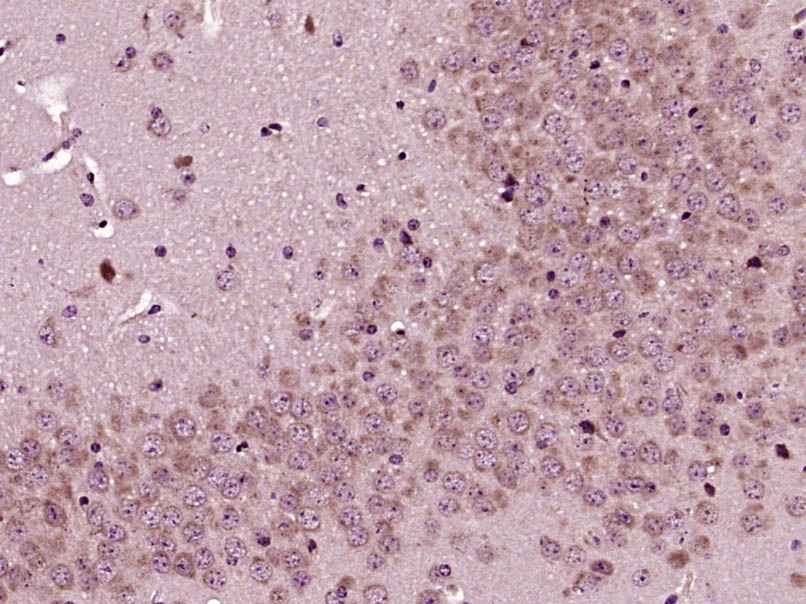 Paraformaldehyde-fixed, paraffin embedded (Mouse brain); Antigen retrieval by boiling in sodium citrate buffer (pH6.0) for 15min; Block endogenous peroxidase by 3% hydrogen peroxide for 20 minutes; Blocking buffer (normal goat serum) at 37°C for 30min; Antibody incubation with (Kv4.3) Polyclonal Antibody, Unconjugated (bs-20219R) at 1:400 overnight at 4°C, followed by operating according to SP Kit(Rabbit) (sp-0023) instructionsand DAB staining.