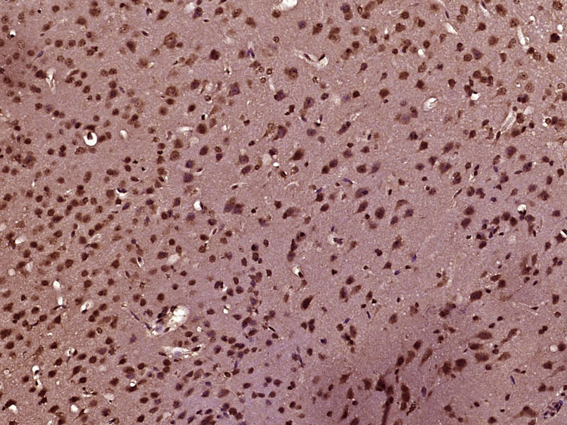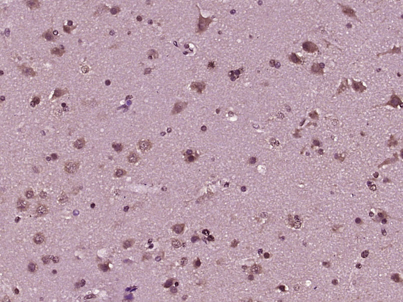 Paraformaldehyde-fixed, paraffin embedded (Rat brain); Antigen retrieval by boiling in sodium citrate buffer (pH6.0) for 15min; Block endogenous peroxidase by 3% hydrogen peroxide for 20 minutes; Blocking buffer (normal goat serum) at 37°C for 30min; Antibody incubation with (Nesprin 3) Polyclonal Antibody, Unconjugated (bs-19209R) at 1:400 overnight at 4°C, followed by operating according to SP Kit(Rabbit) (sp-0023) instructionsand DAB staining.