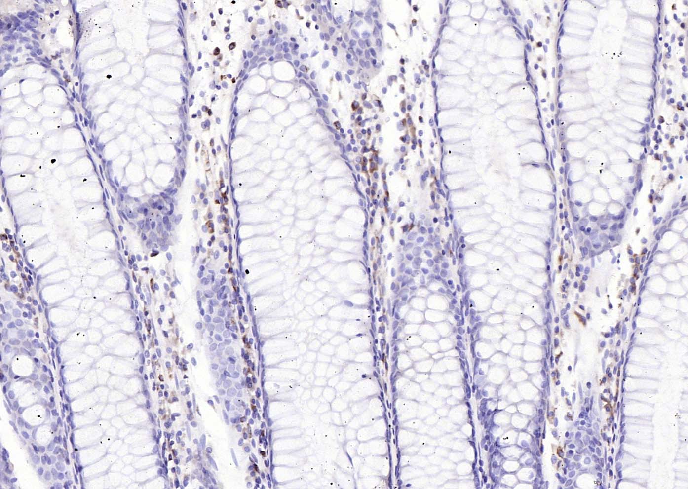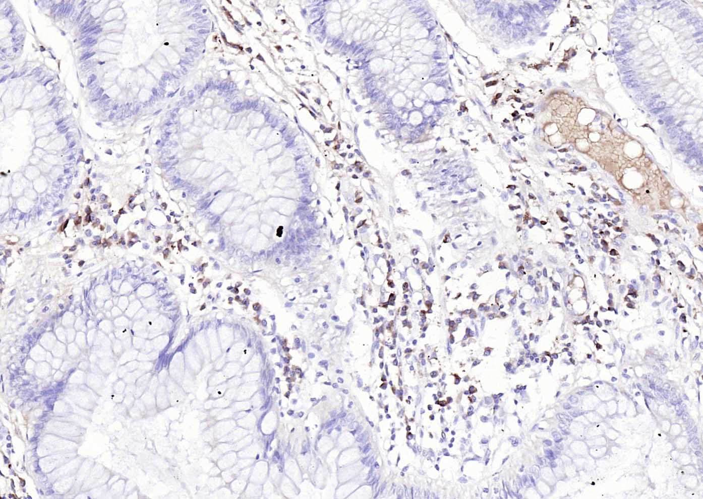 Paraformaldehyde-fixed, paraffin embedded (human colon ); Antigen retrieval by boiling in sodium citrate buffer (pH6.0) for 15min; Block endogenous peroxidase by 3% hydrogen peroxide for 20 minutes; Blocking buffer (normal goat serum) at 37°C for 30min; Antibody incubation with (human IgG Fc) Polyclonal Antibody, Unconjugated (bs-0365R) at 1:200 overnight at 4°C, followed by operating according to SP Kit(Rabbit) (sp-0023) instructionsand DAB staining.