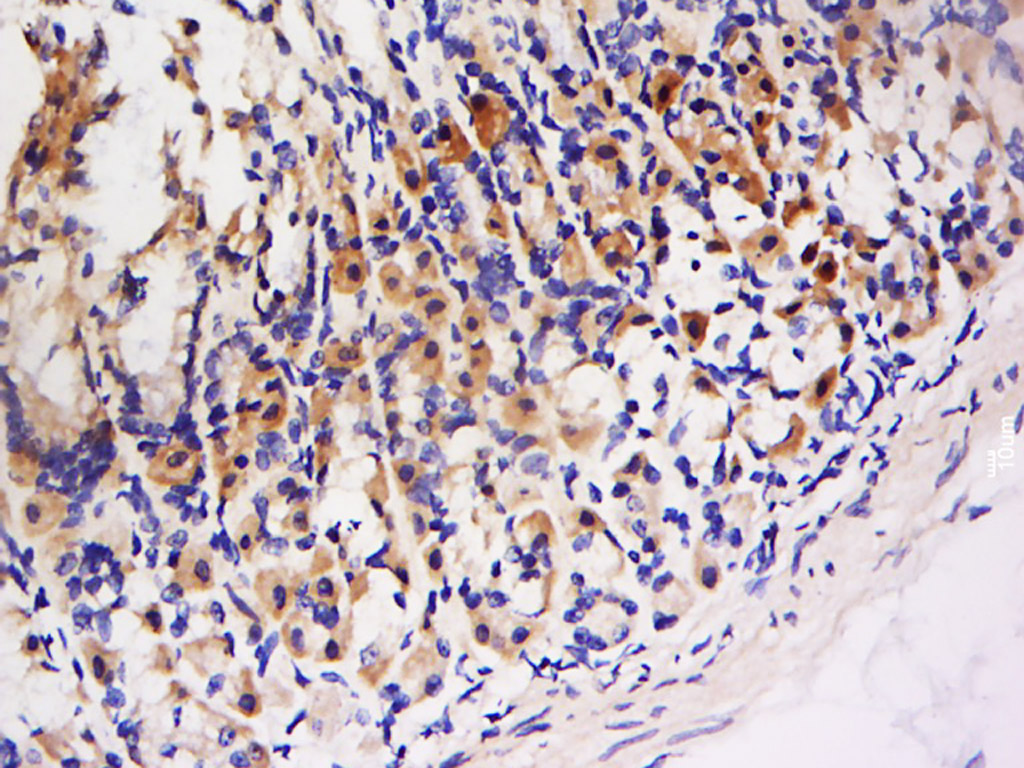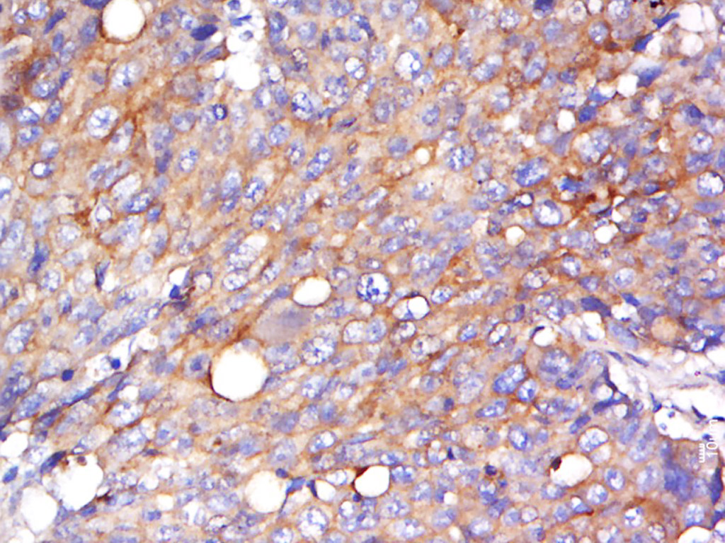 Antigen retrieval: citrate buffer ( 0.01M, pH 6.0 ), Boiling bathing for 15min; Block endogenous peroxidase by 3% Hydrogen peroxide for 30min; Blocking buffer (normal goat serum,C-0005) at 37∩ for 20 min;