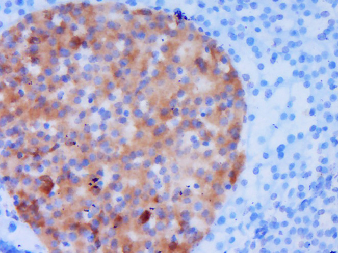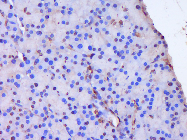 Paraformaldehyde-fixed, paraffin embedded (Rat pancreas); Antigen retrieval by boiling in sodium citrate buffer (pH6.0) for 15min; Block endogenous peroxidase by 3% hydrogen peroxide for 20 minutes; Blocking buffer (normal goat serum) at 37°C for 30min; Antibody incubation with (SH3BP4) Polyclonal Antibody, Unconjugated (bs-19751R) at 1:400 overnight at 4°C, followed by operating according to SP Kit(Rabbit) (sp-0023) instructions and DAB staining.