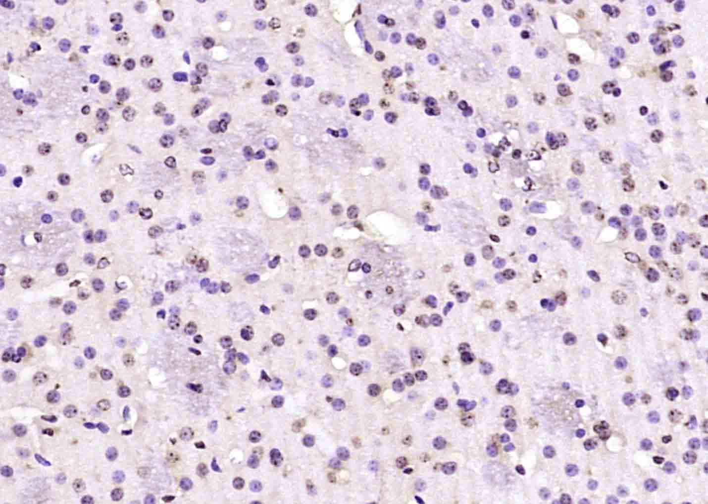 Paraformaldehyde-fixed, paraffin embedded (mouse brain); Antigen retrieval by boiling in sodium citrate buffer (pH6.0) for 15min; Block endogenous peroxidase by 3% hydrogen peroxide for 20 minutes; Blocking buffer (normal goat serum) at 37°C for 30min; Antibody incubation with (SLX4) Polyclonal Antibody, Unconjugated (bs-21035R) at 1:200 overnight at 4°C, followed by operating according to SP Kit(Rabbit) (sp-0023) instructionsand DAB staining.