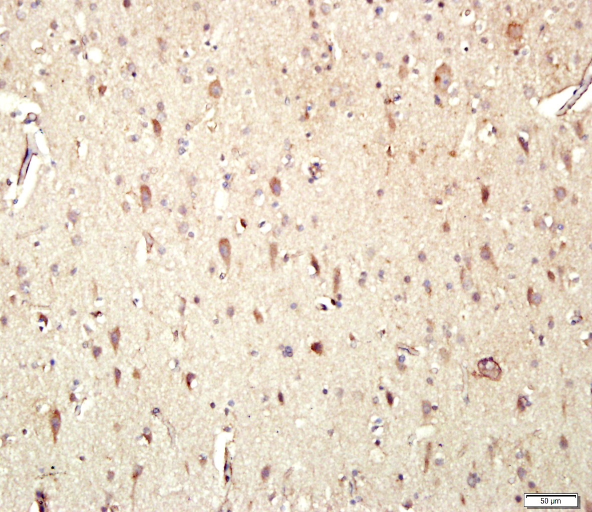 Paraformaldehyde-fixed, paraffin embedded (human brain glioma); Antigen retrieval by boiling in sodium citrate buffer (pH6.0) for 15min; Block endogenous peroxidase by 3% hydrogen peroxide for 20 minutes; Blocking buffer (normal goat serum) at 37°C for 30min; Antibody incubation with (ADRB1) Polyclonal Antibody, Unconjugated (bs-20177R) at 1:400 overnight at 4°C, followed by a conjugated secondary (sp-0023) for 20 minutes and DAB staining.