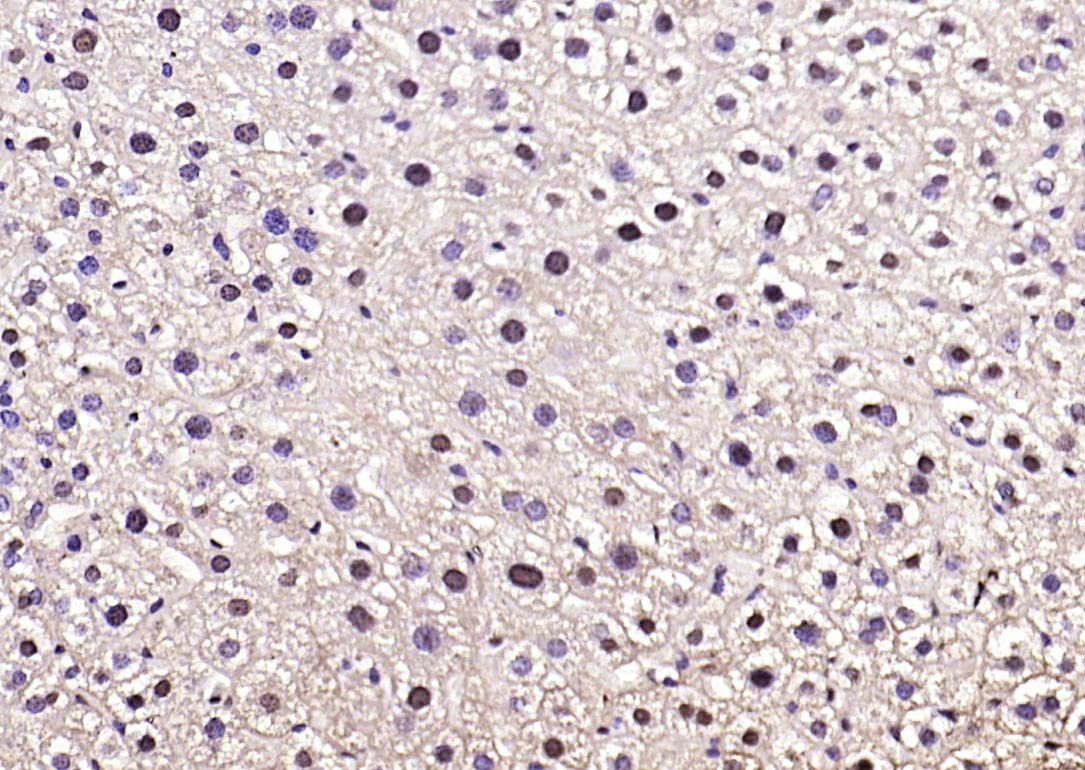 Paraformaldehyde-fixed, paraffin embedded (rat liver); Antigen retrieval by boiling in sodium citrate buffer (pH6.0) for 15min; Block endogenous peroxidase by 3% hydrogen peroxide for 20 minutes; Blocking buffer (normal goat serum) at 37°C for 30min; Antibody incubation with (Phospho-FoxO1 (Ser319)) Polyclonal Antibody, Unconjugated (bs-20095R) at 1:200 overnight at 4°C, followed by operating according to SP Kit(Rabbit) (sp-0023) instructionsand DAB staining.