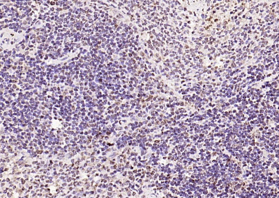 Paraformaldehyde-fixed, paraffin embedded (mouse spleen); Antigen retrieval by boiling in sodium citrate buffer (pH6.0) for 15min; Block endogenous peroxidase by 3% hydrogen peroxide for 20 minutes; Blocking buffer (normal goat serum) at 37°C for 30min; Antibody incubation with (Phospho-FoxO1 (Ser319)) Polyclonal Antibody, Unconjugated (bs-20095R) at 1:200 overnight at 4°C, followed by operating according to SP Kit(Rabbit) (sp-0023) instructionsand DAB staining.