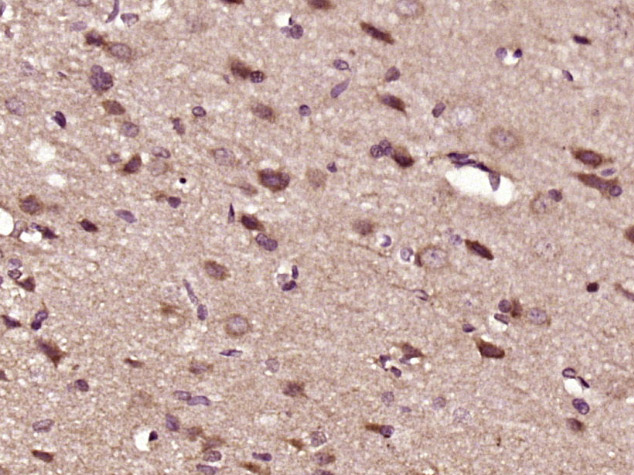 Paraformaldehyde-fixed, paraffin embedded (rat brain tissue); Antigen retrieval by boiling in sodium citrate buffer (pH6.0) for 15min; Block endogenous peroxidase by 3% hydrogen peroxide for 20 minutes; Blocking buffer (normal goat serum) at 37°C for 30min; Antibody incubation with (PTEN(Ser385)) Polyclonal Antibody, Unconjugated (bs-20195R) at 1:400 overnight at 4°C, followed by operating according to SP Kit(Rabbit) (sp-0023) instructionsand DAB staining.