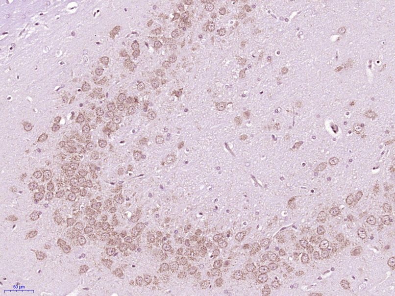 Paraformaldehyde-fixed, paraffin embedded (Rat brain); Antigen retrieval by boiling in sodium citrate buffer (pH6.0) for 15min; Block endogenous peroxidase by 3% hydrogen peroxide for 20 minutes; Blocking buffer (normal goat serum) at 37°C for 30min; Antibody incubation with (NXT2) Polyclonal Antibody, Unconjugated (bs-4412R) at 1:400 overnight at 4°C, followed by operating according to SP Kit(Rabbit) (sp-0023) instructionsand DAB staining.