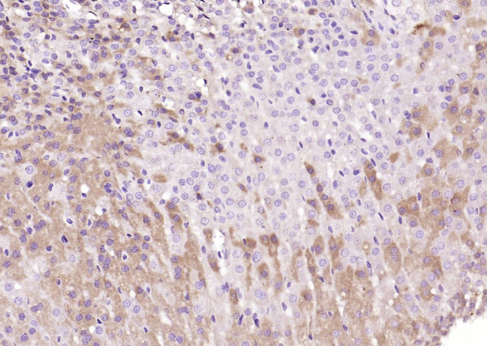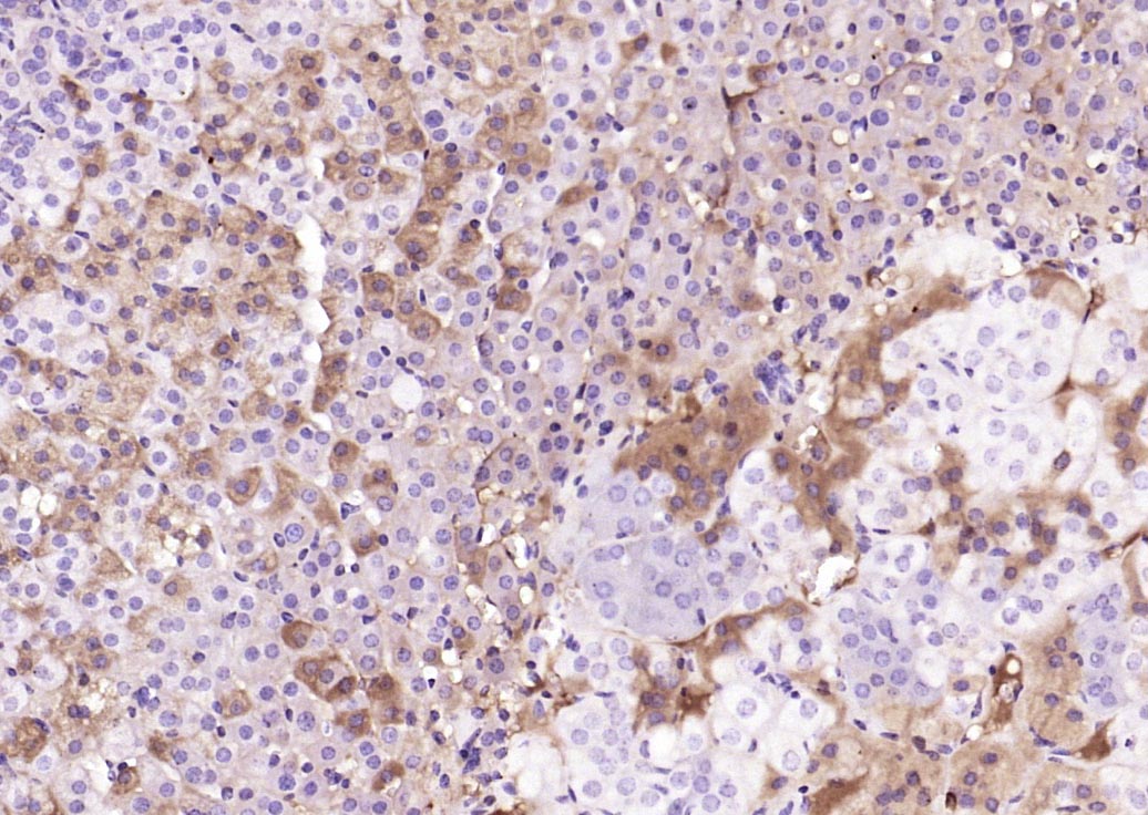 Paraformaldehyde-fixed, paraffin embedded (mouse adrenal gland); Antigen retrieval by boiling in sodium citrate buffer (pH6.0) for 15min; Block endogenous peroxidase by 3% hydrogen peroxide for 20 minutes; Blocking buffer (normal goat serum) at 37°C for 30min; Antibody incubation with (SEC14L1) Polyclonal Antibody, Unconjugated (bs-4447R) at 1:200 overnight at 4°C, followed by operating according to SP Kit(Rabbit) (sp-0023) instructionsand DAB staining.