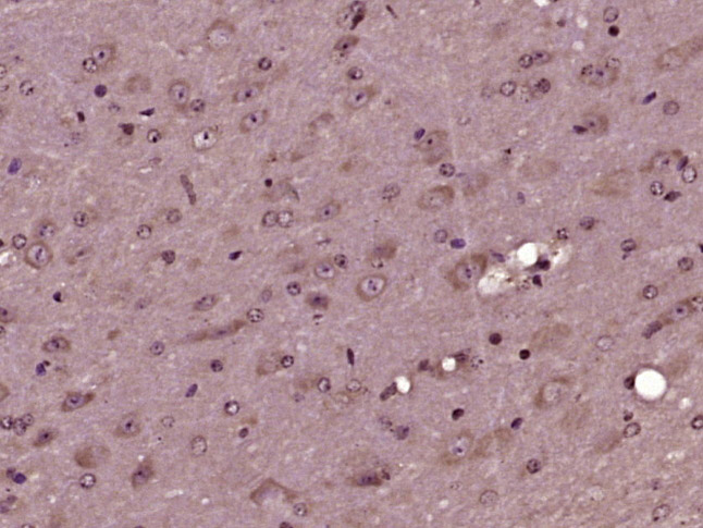 Paraformaldehyde-fixed, paraffin embedded (mouse brain tissue); Antigen retrieval by boiling in sodium citrate buffer (pH6.0) for 15min; Block endogenous peroxidase by 3% hydrogen peroxide for 20 minutes; Blocking buffer (normal goat serum) at 37°C for 30min; Antibody incubation with (SEC61B) Polyclonal Antibody, Unconjugated (bs-4455R) at 1:400 overnight at 4°C, followed by operating according to SP Kit(Rabbit) (sp-0023) instructionsand DAB staining.