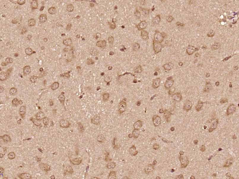 Paraformaldehyde-fixed, paraffin embedded (Mouse brain); Antigen retrieval by boiling in sodium citrate buffer (pH6.0) for 15min; Block endogenous peroxidase by 3% hydrogen peroxide for 20 minutes; Blocking buffer (normal goat serum) at 37°C for 30min; Antibody incubation with (Syntaxin-1B) Polyclonal Antibody, Unconjugated (bs-20575R) at 1:400 overnight at 4°C, followed by operating according to SP Kit(Rabbit) (sp-0023) instructionsand DAB staining.