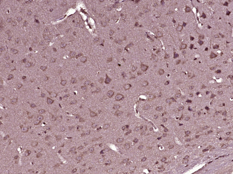 Paraformaldehyde-fixed, paraffin embedded (Mouse brain); Antigen retrieval by boiling in sodium citrate buffer (pH6.0) for 15min; Block endogenous peroxidase by 3% hydrogen peroxide for 20 minutes; Blocking buffer (normal goat serum) at 37°C for 30min; Antibody incubation with (LTBR) Polyclonal Antibody, Unconjugated (bs-6917R) at 1:400 overnight at 4°C, followed by operating according to SP Kit(Rabbit) (sp-0023) instructionsand DAB staining.