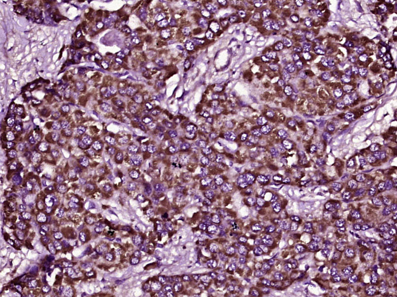 Paraformaldehyde-fixed, paraffin embedded (Human liver carcinoma); Antigen retrieval by boiling in sodium citrate buffer (pH6.0) for 15min; Block endogenous peroxidase by 3% hydrogen peroxide for 20 minutes; Blocking buffer (normal goat serum) at 37°C for 30min; Antibody incubation with (PRSS1) Polyclonal Antibody, Unconjugated (bs-8744R) at 1:400 overnight at 4°C, followed by operating according to SP Kit(Rabbit) (sp-0023) instructionsand DAB staining.