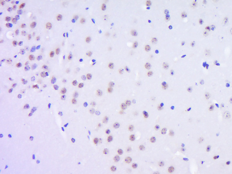 Paraformaldehyde-fixed, paraffin embedded (Mouse brain); Antigen retrieval by boiling in sodium citrate buffer (pH6.0) for 15min; Block endogenous peroxidase by 3% hydrogen peroxide for 20 minutes; Blocking buffer (normal goat serum) at 37°C for 30min; Antibody incubation with (GPR30) Polyclonal Antibody, Unconjugated (bs-20642R) at 1:400 overnight at 4°C, followed by operating according to SP Kit(Rabbit) (sp-0023) instructionsand DAB staining.