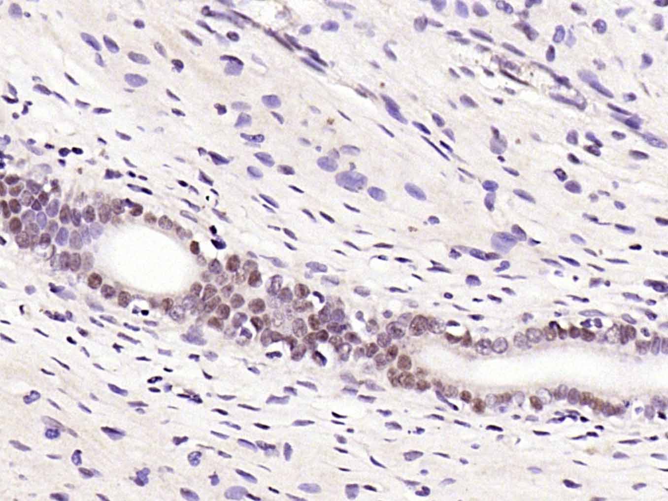 Paraformaldehyde-fixed, paraffin embedded (rat uterus); Antigen retrieval by boiling in sodium citrate buffer (pH6.0) for 15min; Block endogenous peroxidase by 3% hydrogen peroxide for 20 minutes; Blocking buffer (normal goat serum) at 37°C for 30min; Antibody incubation with (GPR30) Polyclonal Antibody, Unconjugated (bs-20642R) at 1:200 overnight at 4°C, followed by operating according to SP Kit(Rabbit) (sp-0023) instructionsand DAB staining.