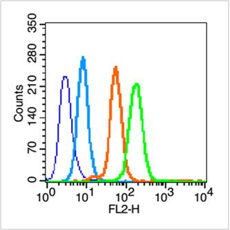 Secondary Antibody (white blue line): Goat anti-rabbit IgG-PE,Dilution: 1μg /test.