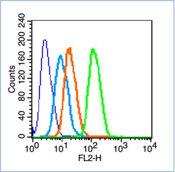 Secondary Antibody (white blue line): Goat anti-rabbit IgG-PE,Dilution: 1μg /test.