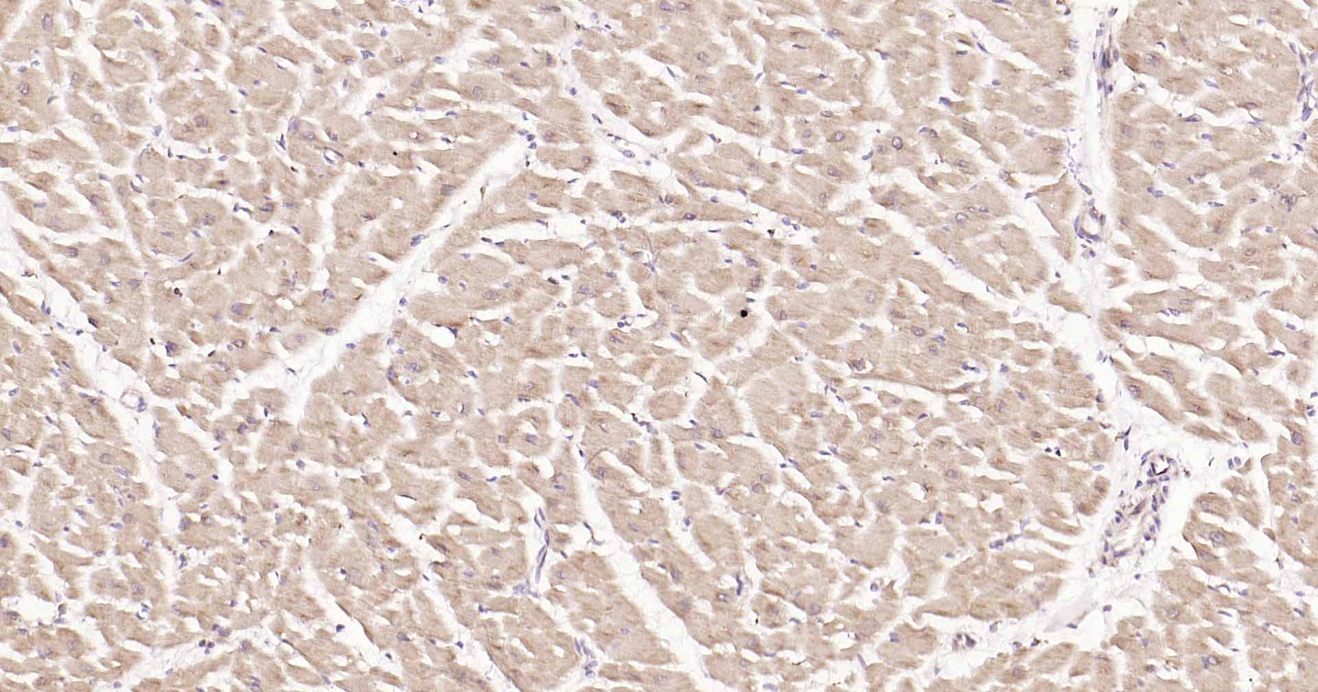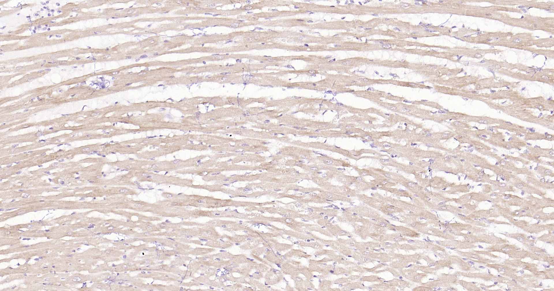 Paraformaldehyde-fixed, paraffin embedded Human Heart; Antigen retrieval by boiling in sodium citrate buffer (pH6.0) for 15 min; Antibody incubation with DDIT3 Polyclonal Antibody, Unconjugated (bs-20669R) at 1:200 overnight at 4°C, followed by conjugation to the SP Kit (Rabbit, SP-0023) and DAB (C-0010) staining.