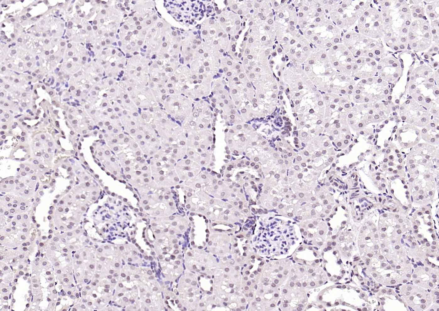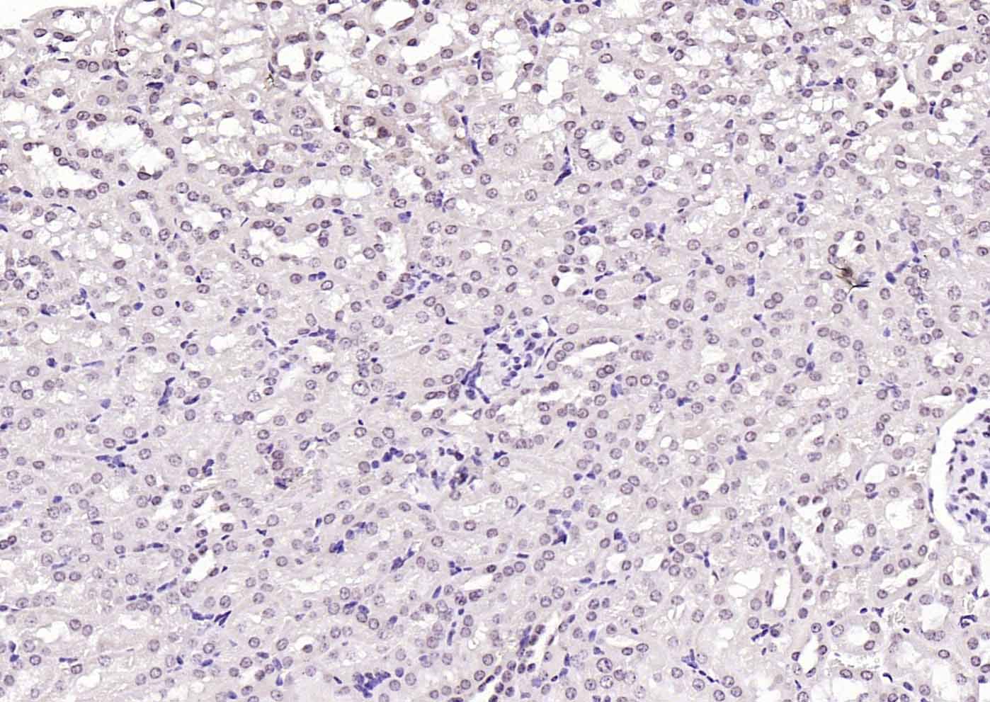 Paraformaldehyde-fixed, paraffin embedded (mouse kidney); Antigen retrieval by boiling in sodium citrate buffer (pH6.0) for 15min; Block endogenous peroxidase by 3% hydrogen peroxide for 20 minutes; Blocking buffer (normal goat serum) at 37°C for 30min; Incubation with (HMGB1) Polyclonal Antibody, Unconjugated (bs-20633R) at 1:200 overnight at 4°C, followed by operating according to SP Kit(Rabbit) (sp-0023) instructionsand DAB staining.
