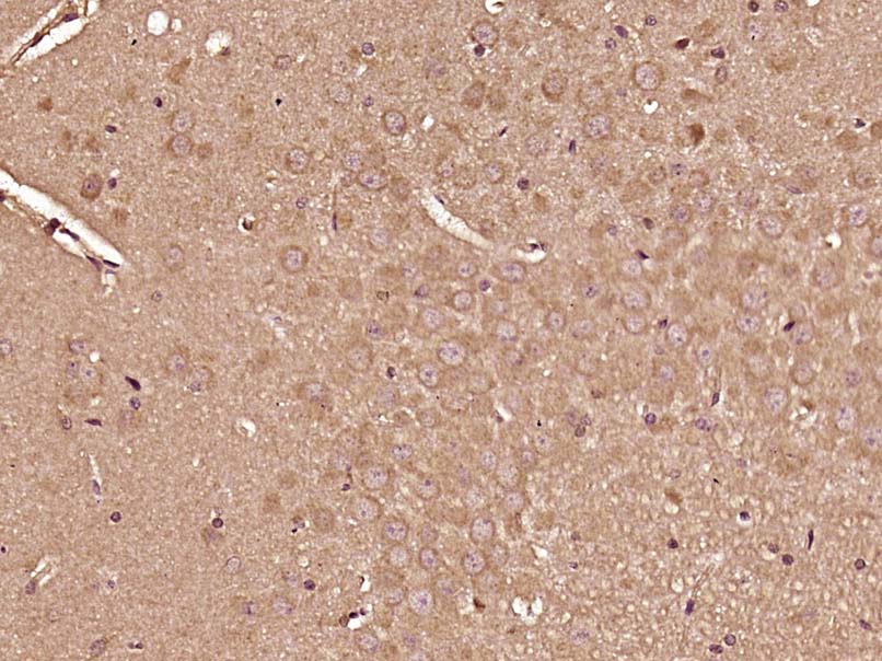 Paraformaldehyde-fixed, paraffin embedded (Rat brain); Antigen retrieval by boiling in sodium citrate buffer (pH6.0) for 15min; Block endogenous peroxidase by 3% hydrogen peroxide for 20 minutes; Blocking buffer (normal goat serum) at 37°C for 30min; Antibody incubation with (IRS-2) Polyclonal Antibody, Unconjugated (bs-20748R) at 1:500 overnight at 4°C, followed by a conjugated secondary (sp-0023) for 20 minutes and DAB staining.