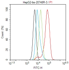 Blank control (black line): HepG2(black) (The cells were fixed with 2% paraformaldehyde (10 min) , then permeabilized with PBST for 30 min on room temperature)