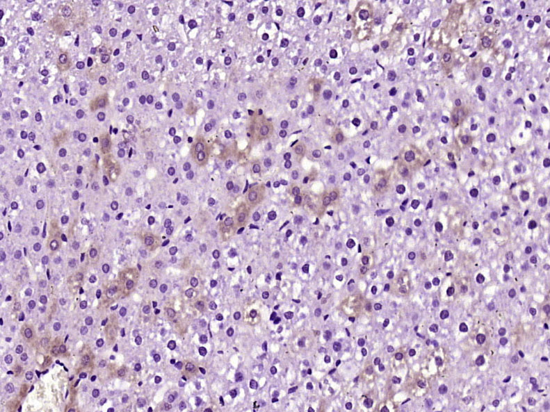 Paraformaldehyde-fixed, paraffin embedded (Rat liver); Antigen retrieval by boiling in sodium citrate buffer (pH6.0) for 15min; Block endogenous peroxidase by 3% hydrogen peroxide for 20 minutes; Blocking buffer (normal goat serum) at 37°C for 30min; Antibody incubation with (CAN1) Polyclonal Antibody, Unconjugated (bs-23048R) at 1:500 overnight at 4°C, followed by a conjugated secondary (sp-0023) for 20 minutes and DAB staining.