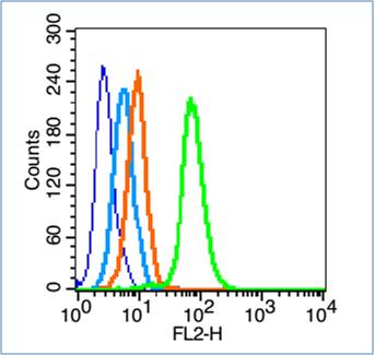Secondary Antibody (white blue line): Goat anti-rabbit IgG-PE,Dilution: 1μg /test.