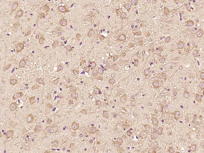 Paraformaldehyde-fixed, paraffin embedded (Rat brain); Antigen retrieval by boiling in sodium citrate buffer (pH6.0) for 15min; Block endogenous peroxidase by 3% hydrogen peroxide for 20 minutes; Blocking buffer (normal goat serum) at 37°C for 30min; Antibody incubation with (ATF6) Polyclonal Antibody, Unconjugated (bs-23094R) at 1:400 overnight at 4°C, followed by operating according to SP Kit(Rabbit) (sp-0023) instructionsand DAB staining.