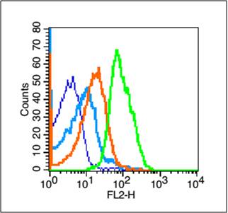 Secondary Antibody (white blue line): Goat anti-rabbit IgG-PE,Dilution: 1μg /test.