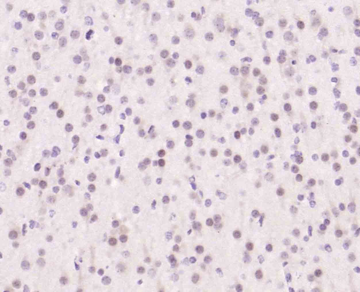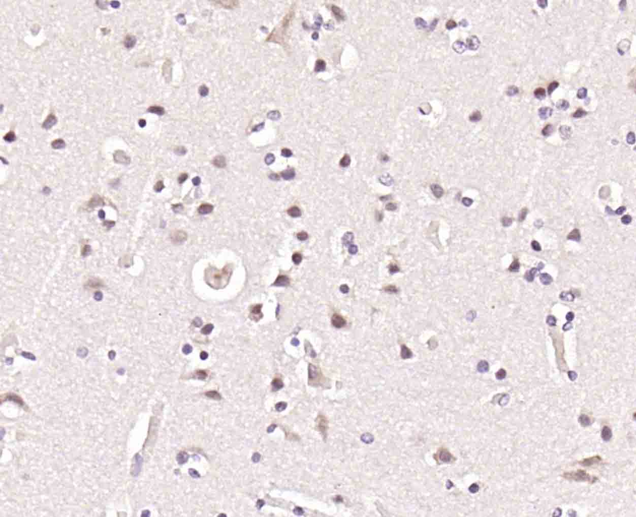 Paraformaldehyde-fixed, paraffin embedded (rat brain); Antigen retrieval by boiling in sodium citrate buffer (pH6.0) for 15min; Block endogenous peroxidase by 3% hydrogen peroxide for 20 minutes; Blocking buffer (normal goat serum) at 37°C for 30min; Incubation with (Topoisomerase I) Polyclonal Antibody, Unconjugated (bs-23144R) at 1:200 overnight at 4°C, followed by operating according to SP Kit(Rabbit) (sp-0023) instructionsand DAB staining.