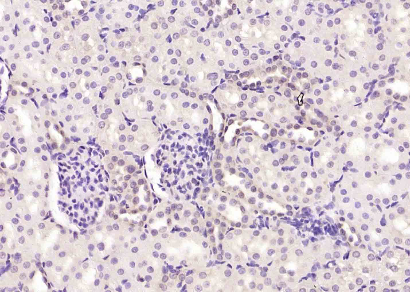 Paraformaldehyde-fixed, paraffin embedded (rat kidney); Antigen retrieval by boiling in sodium citrate buffer (pH6.0) for 15min; Block endogenous peroxidase by 3% hydrogen peroxide for 20 minutes; Blocking buffer (normal goat serum) at 37°C for 30min; Antibody incubation with (Bcl-2) Monoclonal Antibody, Unconjugated (bsm-33047M) at 1:200 overnight at 4°C, followed by operating according to SP Kit(Mouse)(sp-0024) instructionsand DAB staining.