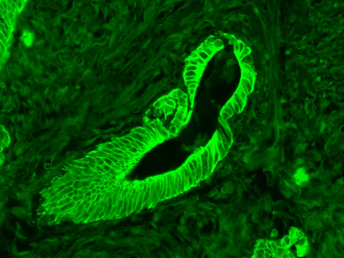 Primary Antibody (green line): Mouse Anti-Cytokeratin 8 antibody (bsm-33061M)