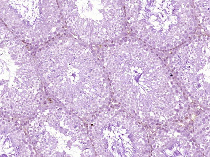 Paraformaldehyde-fixed, paraffin embedded (Mouse testis); Antigen retrieval by boiling in sodium citrate buffer (pH6.0) for 15min; Block endogenous peroxidase by 3% hydrogen peroxide for 20 minutes; Blocking buffer (normal goat serum) at 37°C for 30min; Antibody incubation with (HP1 gamma) Monoclonal Antibody, Unconjugated (bsm-33374M) at 1:400 overnight at 4°C, followed by operating according to SP Kit(Mouse) (sp-0024) instructionsand DAB staining.