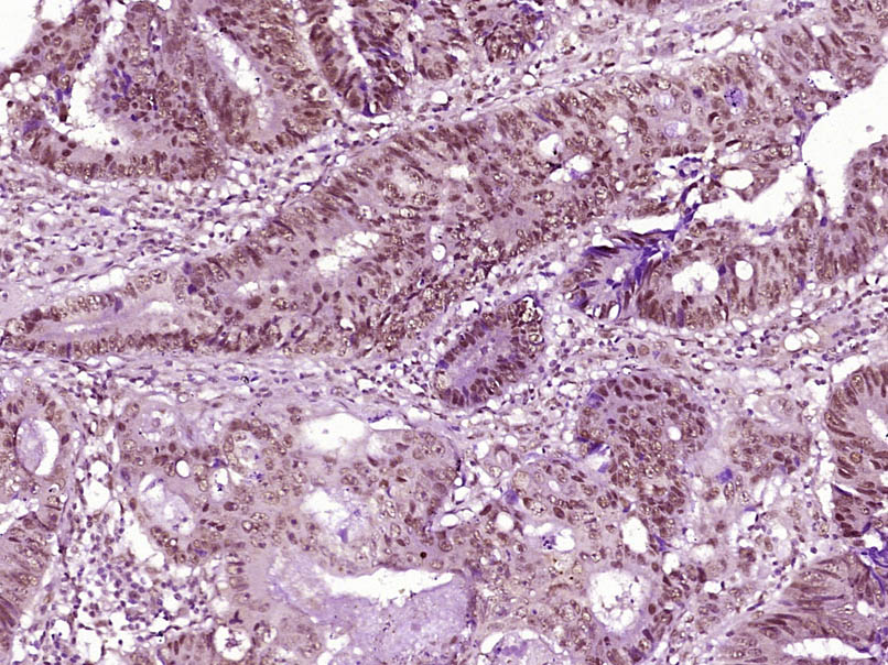 Paraformaldehyde-fixed, paraffin embedded (Human cervical carcinoma); Antigen retrieval by boiling in sodium citrate buffer (pH6.0) for 15min; Block endogenous peroxidase by 3% hydrogen peroxide for 20 minutes; Blocking buffer (normal goat serum) at 37°C for 30min; Antibody incubation with (HP1 gamma) Monoclonal Antibody, Unconjugated (cell supernatant of bsm-33376M) at 1:400 overnight at 4°C, followed by a conjugated secondary (sp-0023) for 20 minutes and DAB staining.