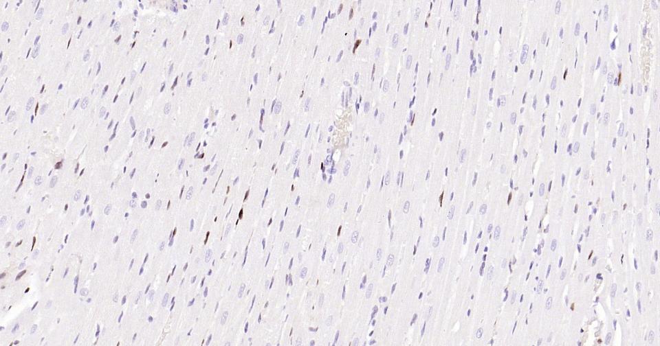 Paraformaldehyde-fixed, paraffin embedded Rat Heart; Antigen retrieval by boiling in sodium citrate buffer (pH6.0) for 15 min; Antibody incubation with PCNA(Nuclear Loading Control) Monoclonal Antibody, Unconjugated(bsm-33035M) at 1:200 overnight at 4°C, followed by conjugation to the SP Kit (Mouse, sp-0024) and DAB (C-0010) staining.