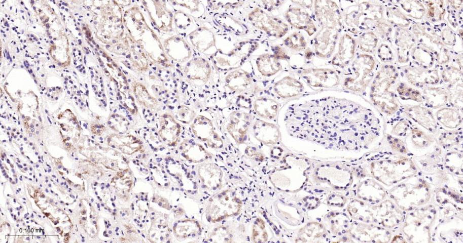 Paraformaldehyde-fixed, paraffin embedded Human Kidney; Antigen retrieval by boiling in sodium citrate buffer (pH6.0) for 15 min; The section was incubated with STAT3 Monoclonal Antibody, Unconjugated (ascites of bsm-33223M) at 1:1500 overnight at 4°C, followed by conjugation to the bs-40296G-HRP and DAB (C-0010) staining.