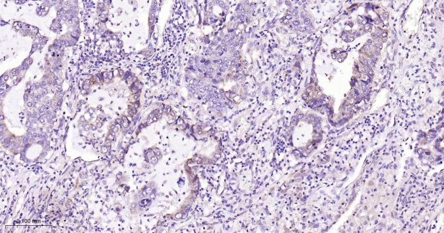 Paraformaldehyde-fixed, paraffin embedded Human Lung Cancer; Antigen retrieval by boiling in sodium citrate buffer (pH6.0) for 15 min; The section was incubated with STAT3 Monoclonal Antibody, Unconjugated (ascites of bsm-33223M) at 1:1500 overnight at 4°C, followed by conjugation to the bs-40296G-HRP and DAB (C-0010) staining.