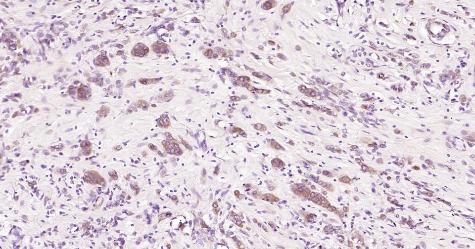 Paraformaldehyde-fixed, paraffin embedded Human Breast Cancer; Antigen retrieval by boiling in sodium citrate buffer (pH6.0) for 15 min; Antibody incubation with Beta tubulin Monoclonal Antibody, Unconjugated(bsm-33120M) at 1:200 overnight at 4°C, followed by conjugation to the SP Kit (Mouse, sp-0024) and DAB (C-0010) staining.